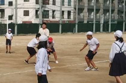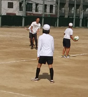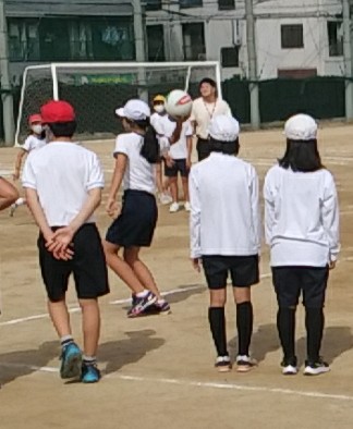 9月21日(水)、6年生は、5時間目、教育実習生と一緒にクラス対抗のドッヂボールを運動場で行いました。