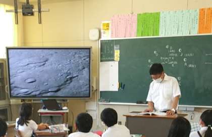 9月26日(月)、6年の理科の授業で、月のクレーターの映像を見て、月の表面と裏面のクレーターの違いについての学習をしていました。