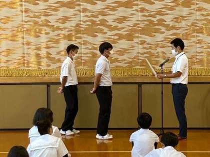 最初に、サッカー部が大阪市秋季総合体育大会で3位の表彰を行いました。