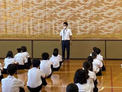 今日の中学校の集会は、中学校教頭先生が担当しました。