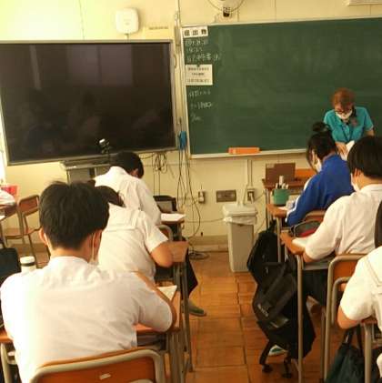 10月4日(火)、9年2組国語の授業です。テスト前の学習でもあり、2組の教室と習熟度別教室を使って、分割授業をしていました。