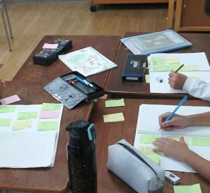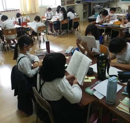 10月4日(火)、3年1組で、児童たちが手作りした物語をみんなに読んでもらいよかったところをふせんに書いてもらう授業をしていました。