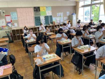 今日は、9年1組の「いただきます!」の様子です。