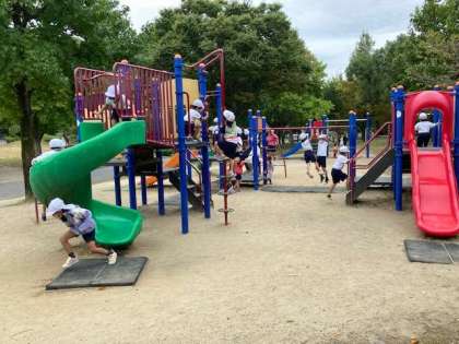 お弁当の後はこれも楽しみにしていた、自由時間です。遊具で思いっきり遊びました。