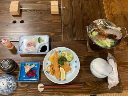入浴も終え、楽しみにしていた夕食の時間です。この時期ならではの伊勢海老がでました。豪華です。