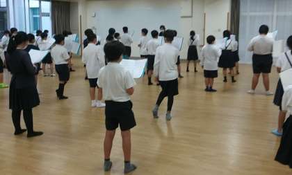 10月17日(月)、交流ホールにて、5年生の音楽の授業が行われていました。