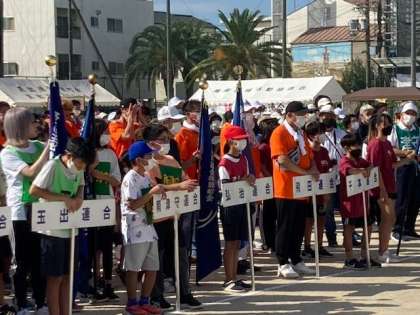 初夏を思わせる日差しの中、第66回西成区民体育レクリエーション大会が10月16日、成南中学校グランドで開催されました。本校からも児童生徒が地域代表として競技に参加しました。