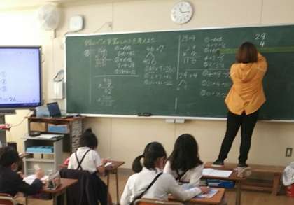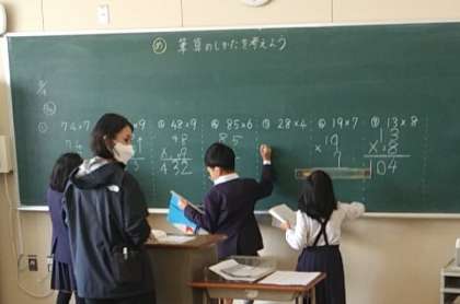 10月18日(火)、3年生の算数で、間違いやすいかけ算のくり上がりの学習をしていました。