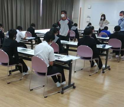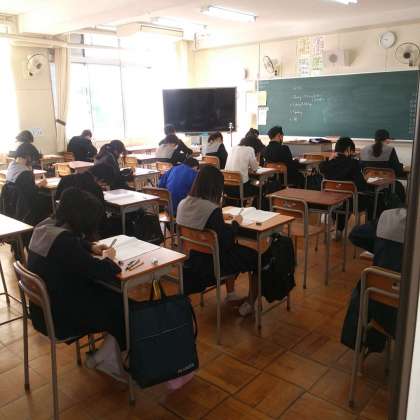 10月19日(水)午前中、9年生は、リーディングテスト・リスニング&ライティングテスト・スピーキングテストが行われていました。スピーキングテストは、ヘッドホンを身につけてタブレットを使ってのテストです。