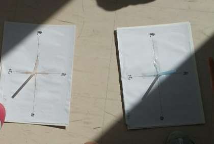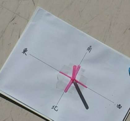 10月19日(水)、3年の理科の授業です。2階渡り廊下にて、太陽の動きで、影の長さと影の動き方を学習していました。