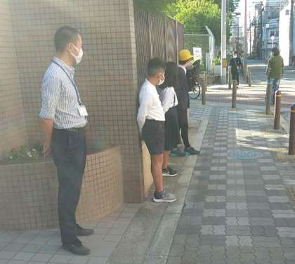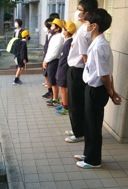 10月20日(木)、通用門で、児童生徒たちによる朝のあいさつが行われていました。その後、写真はありませんが、児童たちは、運動場で、『バナナ鬼』をやっていました。この鬼ごっこは、こおり鬼とは少しルールが異なります。