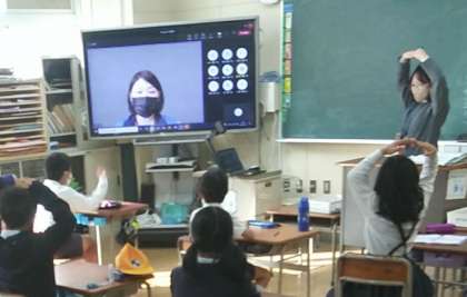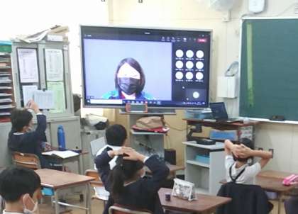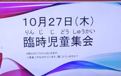 10月27日(木)、朝の児童集会は、Teamsで、1〜6年生の教室で行いました。校長先生のあいさつに始まり、実習生のお話しがありました。その後、まるばつクイズで大いに盛り上がりました。