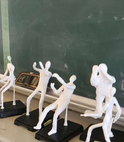 10月31日(月)、6年生の教室にて、プラスチックの骨格に粘土が肉付けされ形がはっきりとしてきました。後は、粘土が固まるまで待って色付けです。