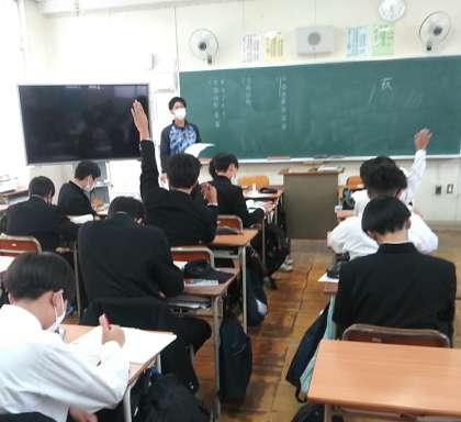 11月1日(火)、保健体育の授業が8年1組で行われていました。内容は、心肺蘇生法、AED等の学習をしていました。