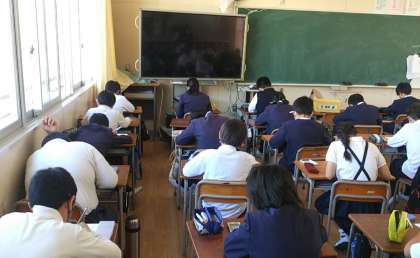 11月2日(水)、5年生がテストを受けていました。内容は、難易度が少し高く、密度の問題には、電卓を使って、速さ・時間・道のりでは、単位変換をしないといけない問題等というものです。