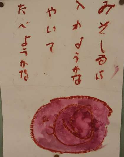 11月4日(金)、先日まで2年生廊下前に並べられていたお芋さんたち(10月17日に芋掘りをしたもの)は児童たちに分けられたようだ。