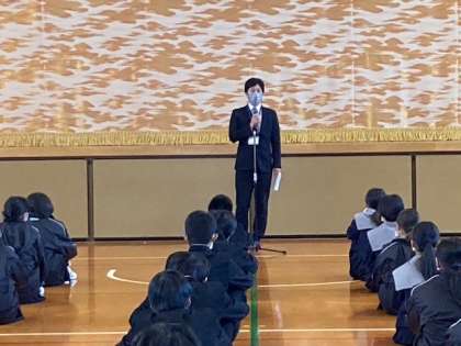 11月7日月曜日、中学校の全校集会は、中学校の教頭先生からのお話でした。