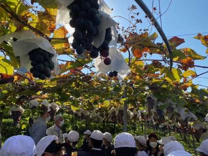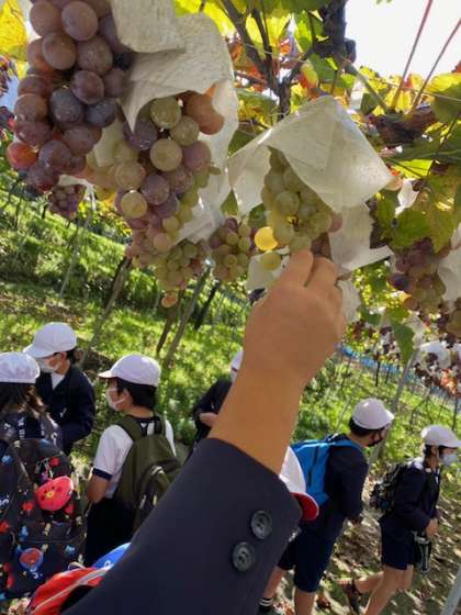4年生は社会見学でカタシモワイナリーに行きました。色づきの違うブドウを食べて、味の違いを知りました。色づきの違いは夏の朝夕の寒暖差と雨量によるということです。