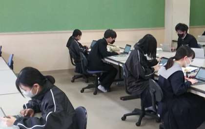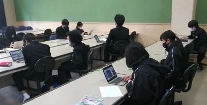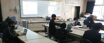 11月16日(水)、8年生の半分は、パソコン教室にて、動物の飼育の仕方や病気等について、植物の育て方や病気について各自のタブレットを使って調べて、今後の授業で発表します。