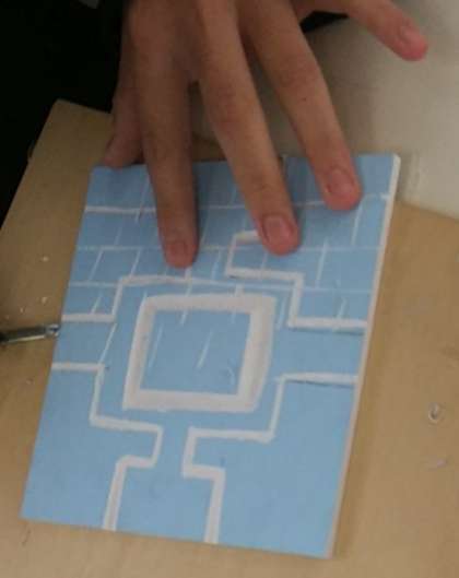 12月2日(金)、8年2組の美術室での授業です。版画板を丁寧に彫っていました。