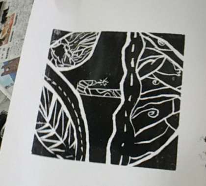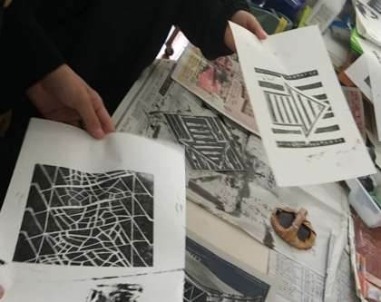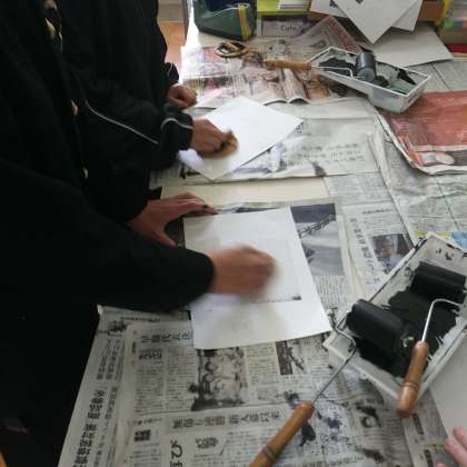 12月2日(金)、彫られた版画板に黒色で色づけされて半紙に印刷していました。