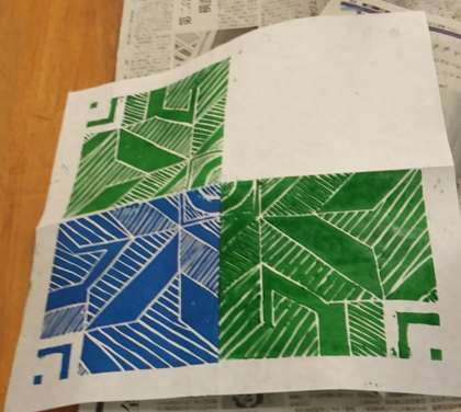 12月2日(金)、8年生の版画は、これから彩りよく着色されて更に変化する模様です。