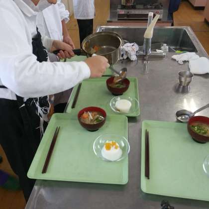 12月5日(月)、7年1組の半分は、調理室にて、さつま汁のあくぬきから味噌ときや盛り付けも完璧にやりこなしていました。