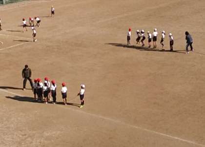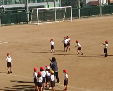 12月6日(火)、2年生は、運動場で、ランニングの後、半分は、ドッヂボール。もう半分は、おおなわとびをやっていました。