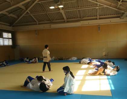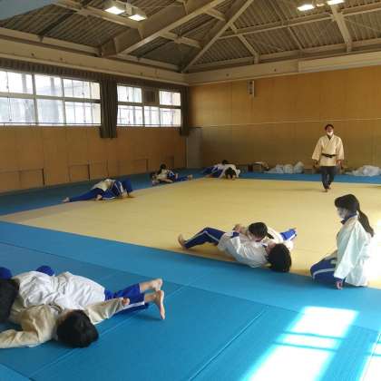 12月9日(金)、格技室で、柔道の寝技の練習をしていました。