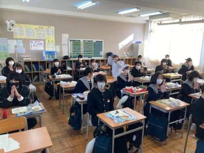 今日は8年生2組の「いただきます!」の様子です。