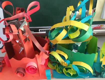 12月12日(月)、3年1組のタワーです。色々な細工がほどこされています。まだまだこれからデコられることでしょう。