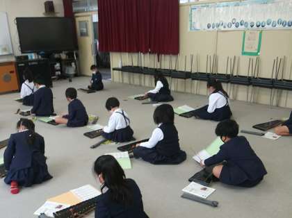 12月13日(火)、3年2組は、小音楽室にて、木琴を奏でていました。