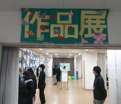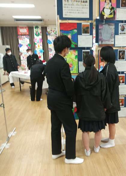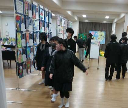 12月14日(水)、9年生は、朝の学年集会があり、本日より交流ホールで開かれている展示を観賞していました。