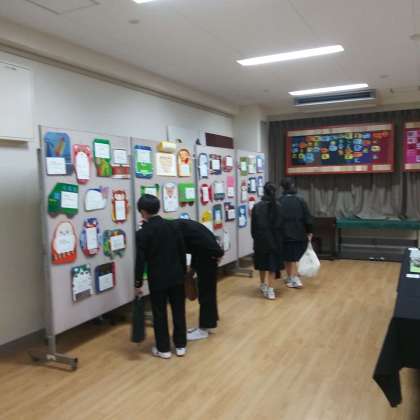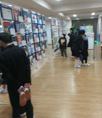 12月16日(金)、8年生が交流ホールにて作品展を観賞していました。