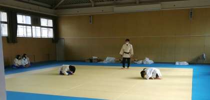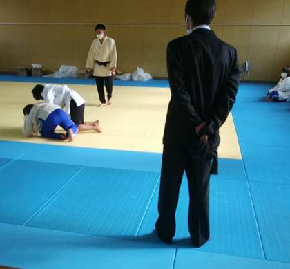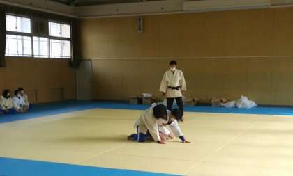 12月16日(金)、柔道の授業で、受け身の練習をして、寝技の試合形式をしていました。先鋒・次鋒・大将の3人での対戦をしていました。