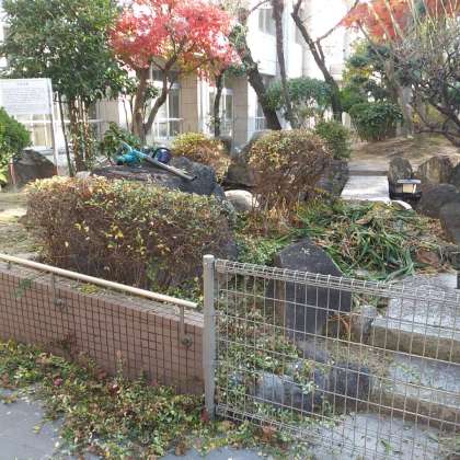 12月16日(金)、本校の管理作業員さんは、正門横の低木を剪定しています。