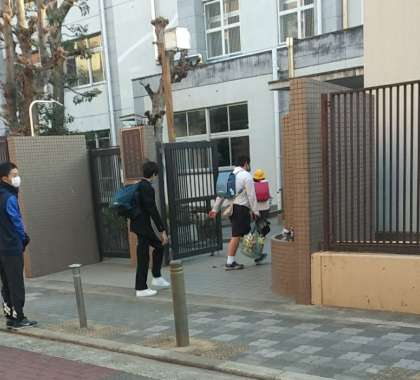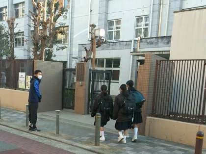 1月10日(火)、通用門の登校風景です。皆、元気よくあいさつしていました。