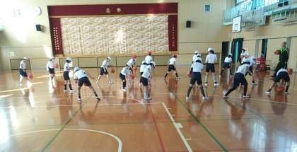 1月12日(木)、体育館にて、バスケットボールのドリブルの仕方を学習していました。