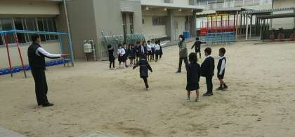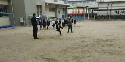 1月16日(月)、中庭にて、1年1組が大縄飛びをしていました。