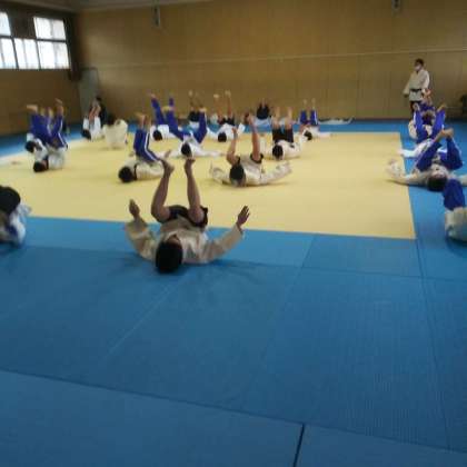 1月16日(月)、7年生の男子は、格技室にて、柔道の授業で、柔軟運動から受け身、寝技をしていました。女子は、教室にて、保健の授業で、二次性徴について学習していました。