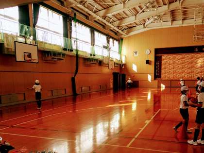 1月19日(木)、体育館にて、縄跳びで身体をほぐし、その後、バスケットボールに持ち変えて、ドリブルシュートの練習をしていました。