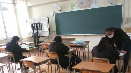 1月23日(月)、9年生にとっての最後の学年末テスト1日目が終わり、明日の2日目(数学・社会・保体)に向けて、3名の生徒が自学自習していました。
