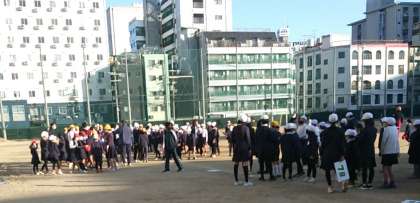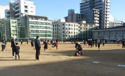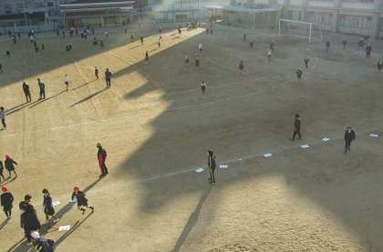 1月26日(木)、運動場で、児童たちは、鬼ごっこをしていました。鬼は、朝会代表がくじをひいて決めました。児童たちは、とても元気に走りまわりました。