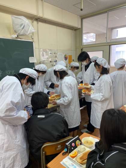 今日は、8年2組の給食当番さんの様子です。