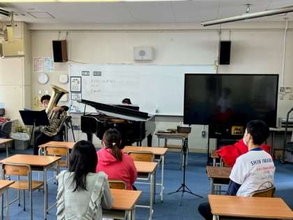 一人目の生徒は、チューバで『夜明けのマンハッタン』を演奏。