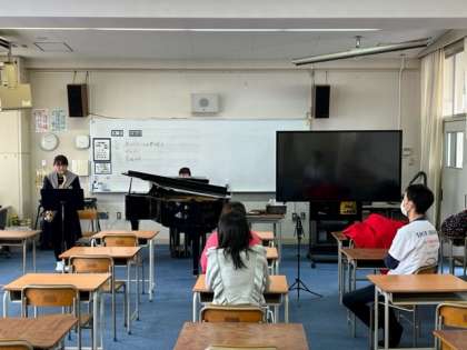 吹奏楽部顧問の先生のお知り合いの方がピアノ伴奏をしてくださいました。