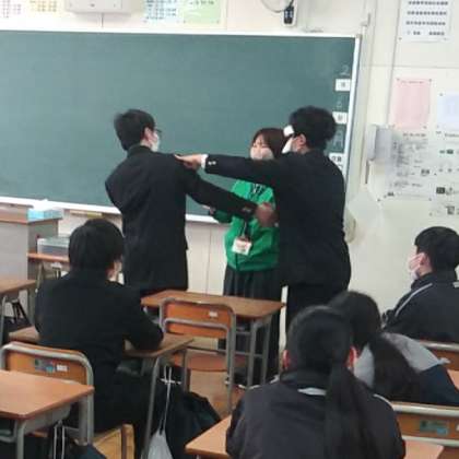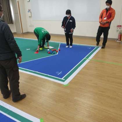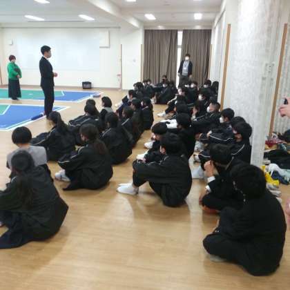 2月6日(月)、5限目・6限目に、交流ホールにおいて、7年生の福祉教育体験が始まりました。中学校の教頭先生のお話しと西成区社会福祉協議会の方からのお話しを聞き、1組・2組に分かれて、体験活動『ボッチャ』『アイマスク』をしました。