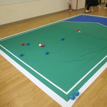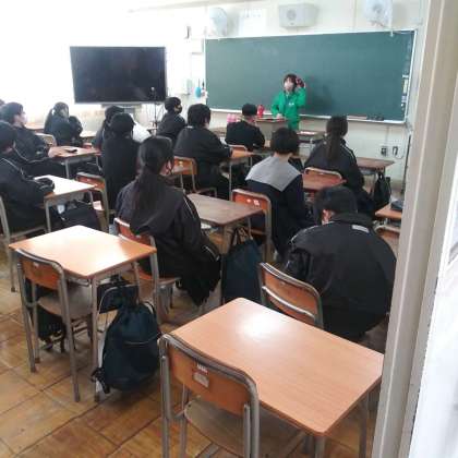 2月6日(月)、『アイマスク体験』は、誘導してくれている生徒にしがみついて歩いている生徒もいました。体験後教室で、点字のお話しやシャンプーとリンスの見分けかたのお話しをしてくださいました。『ボッチャ』では、やればやるほど歓声が高まっていた。