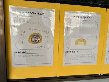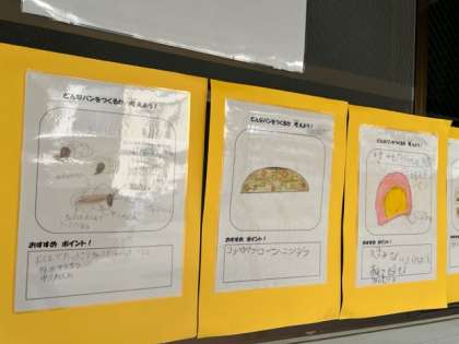 先日はパン作りの見学にも行き、今回はオリジナルパンを小中学生合同で考えました。どれを見ても、とってもおいしそうです。