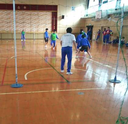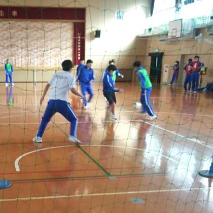 2月14日(火)、9年生男子は、体育館にて、ミニサッカーのゲームをしていました。